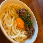 味噌ラーメン、釜玉肉月見うどん、肉うどん、ちくわうどん