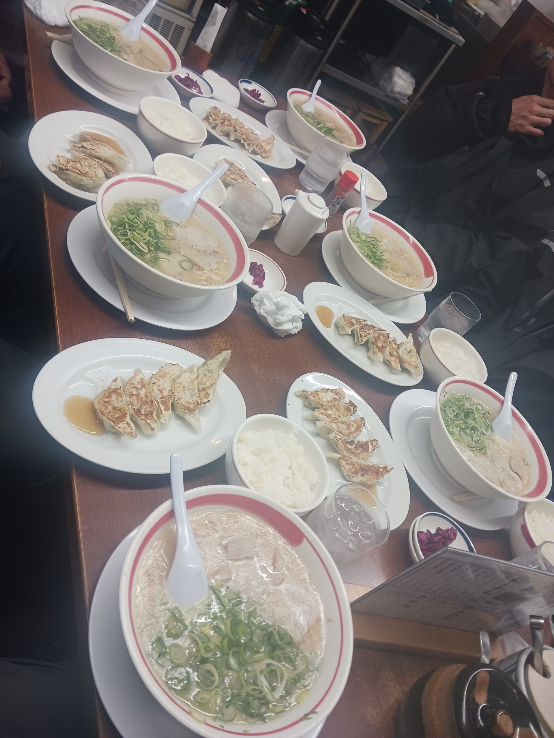 味噌ラーメン、釜玉肉月見うどん、肉うどん、ちくわうどん